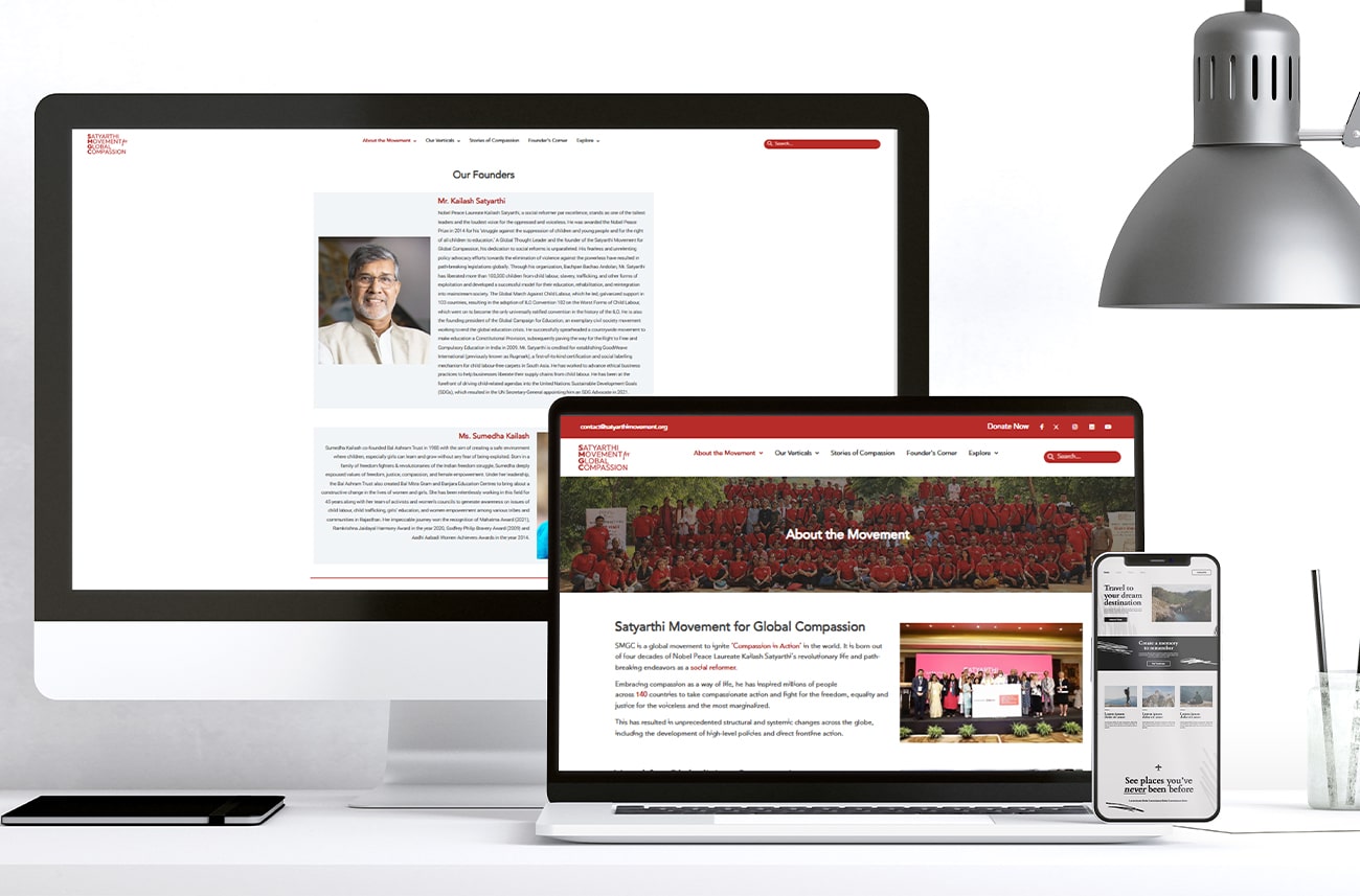 Kailash Satyarthi — a Nobel Peace Laureate and global icon — was widely recognized for his fight against child labor. But with the launch of SMGC, it was time to reshape that image. The challenge was to expand public perception, showcasing him as a global humanitarian and reformer championing compassion at a universal scale. The website needed to embody this broader vision while honoring the legacy he’d already built.